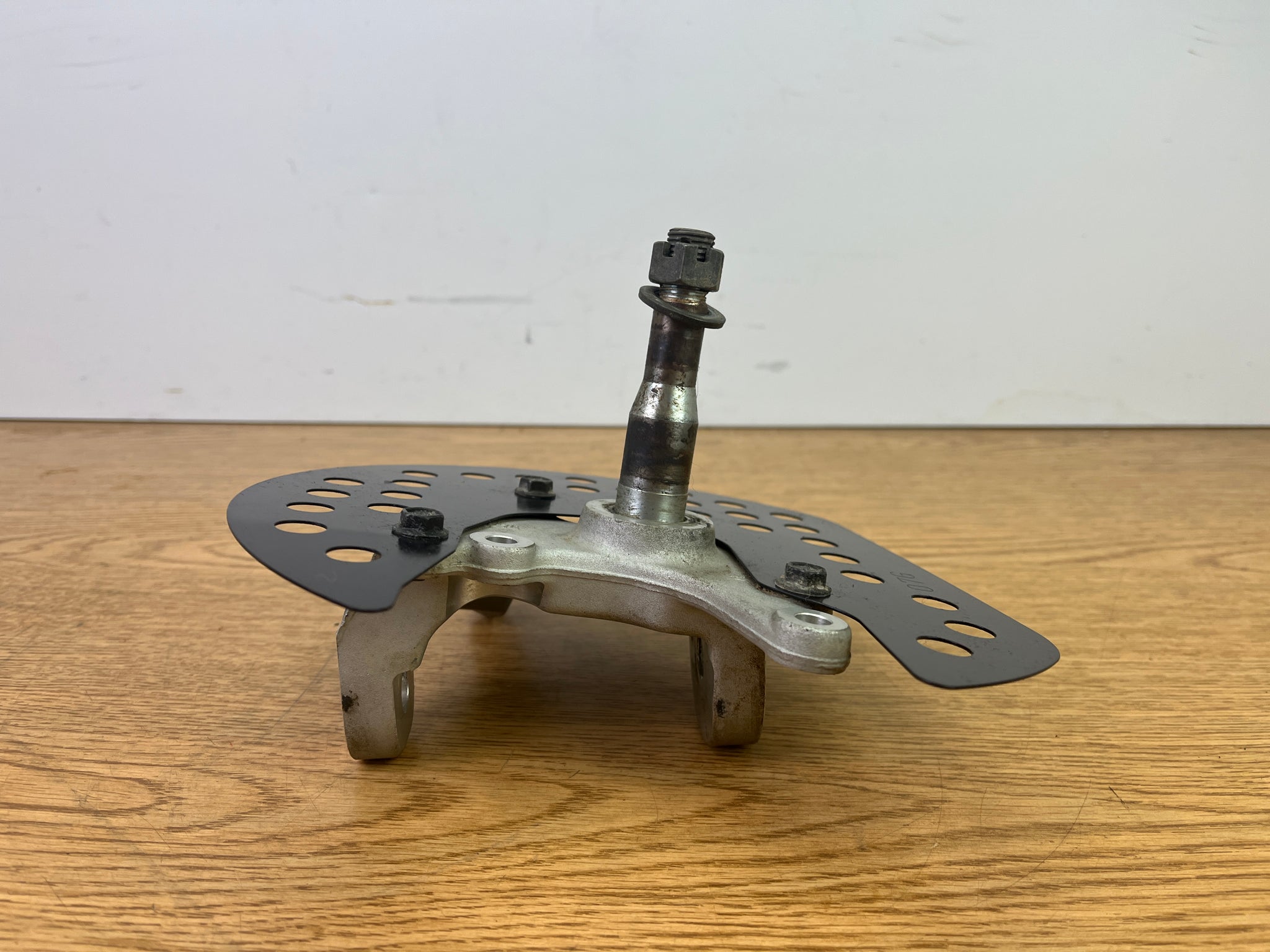 This is a USED Left Front Knuckle Steering Spindle