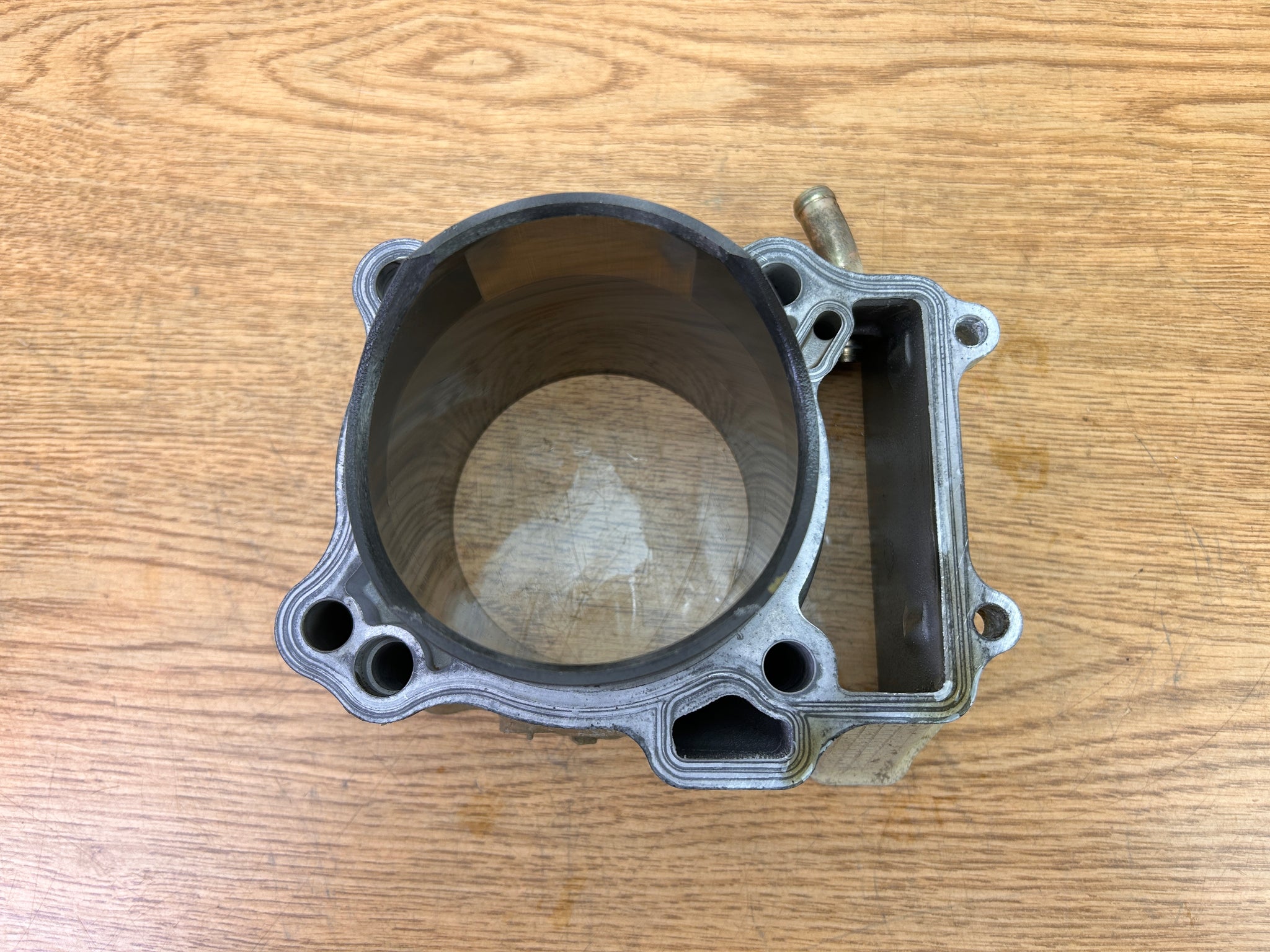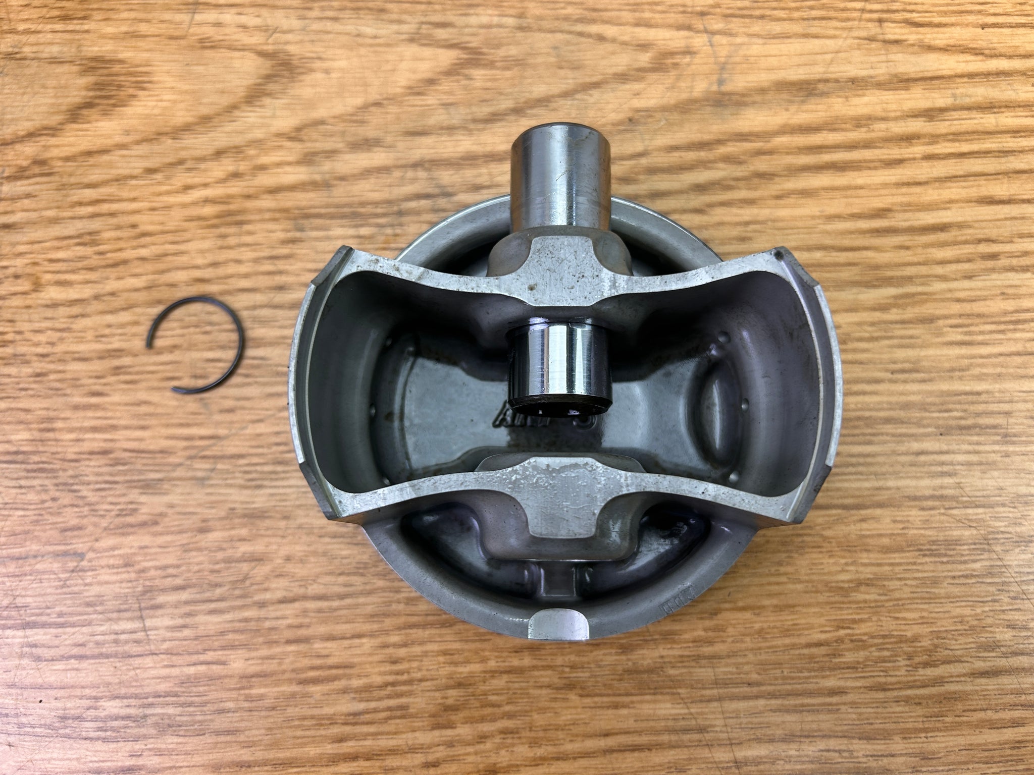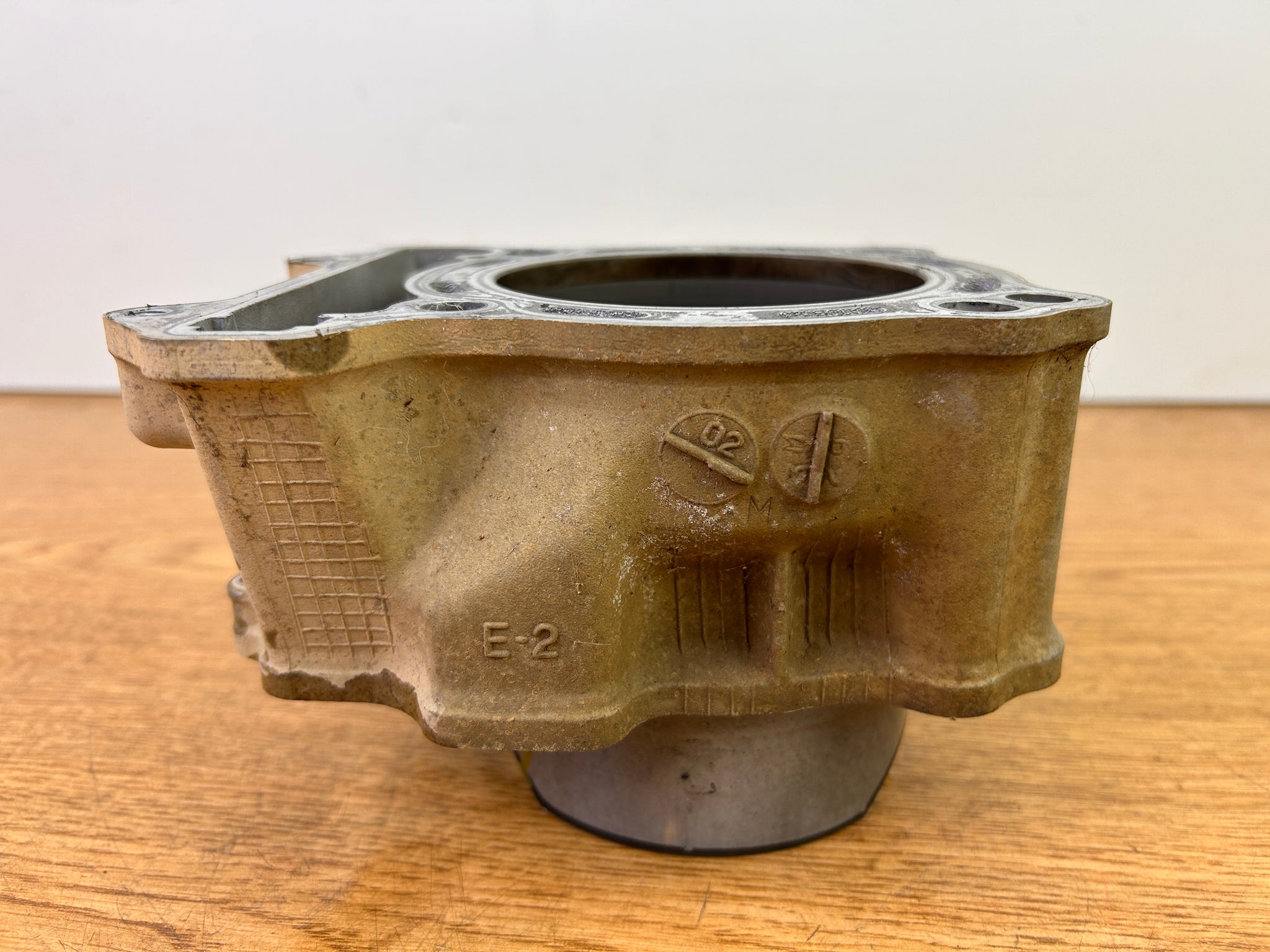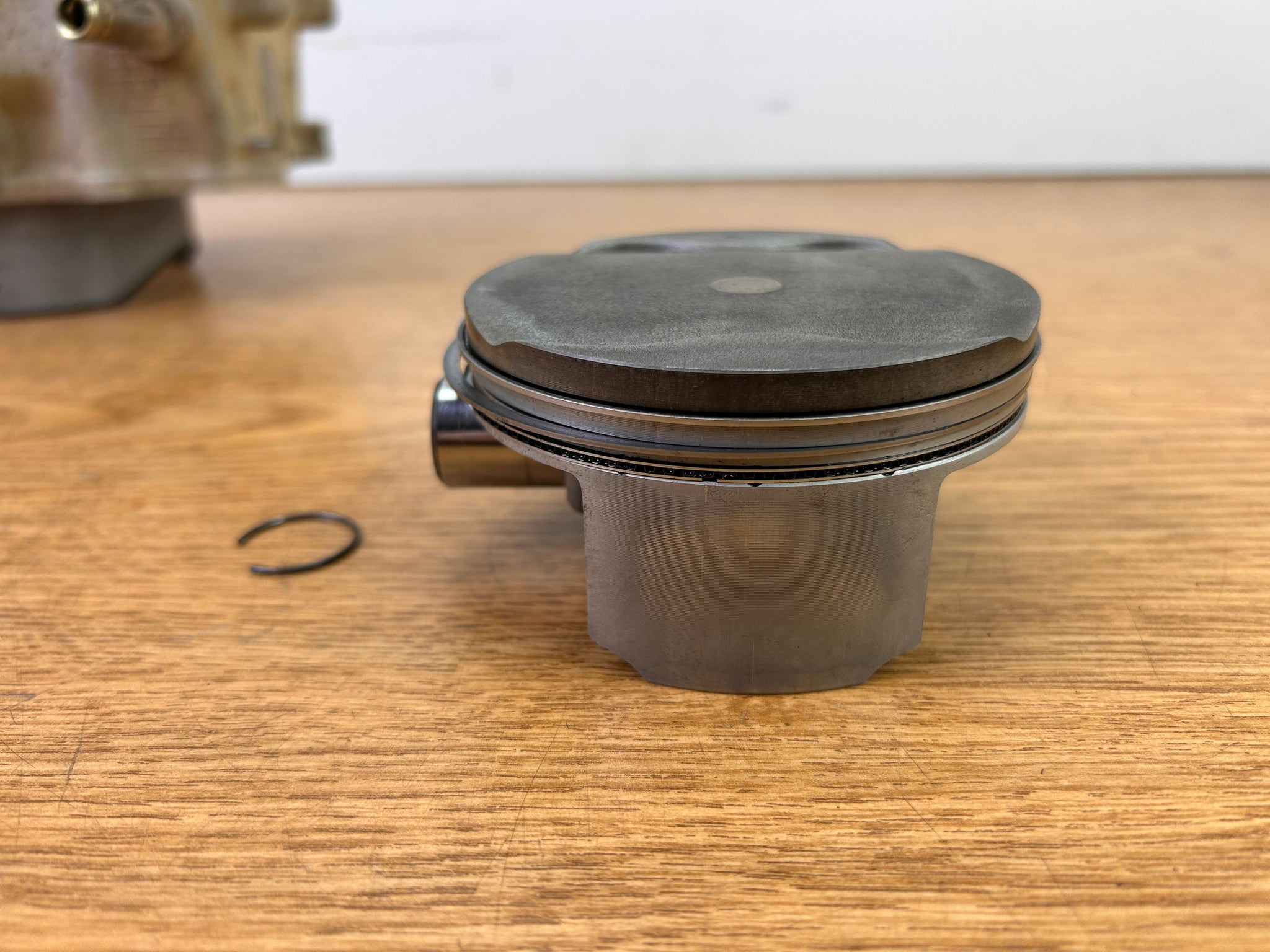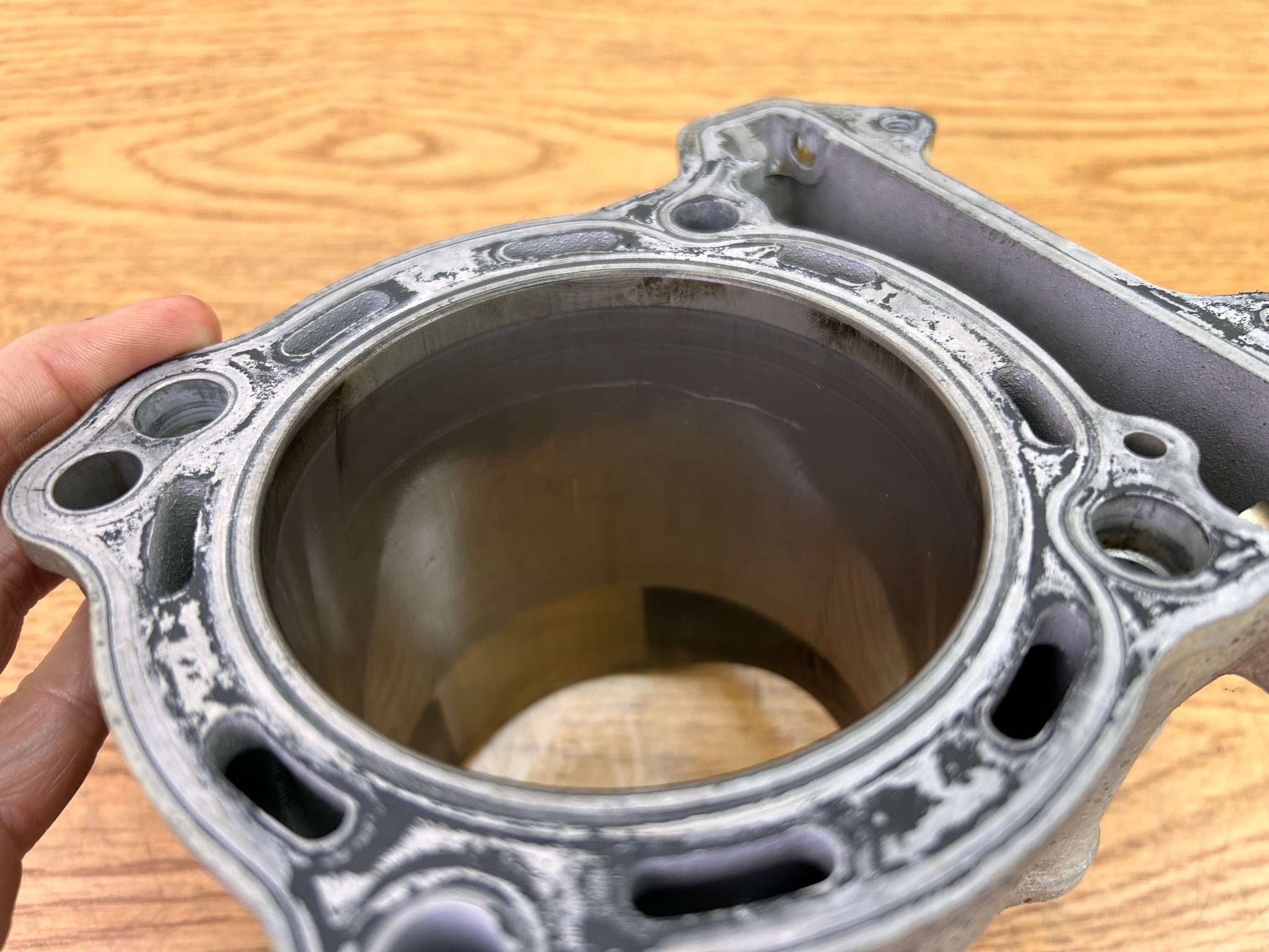 NOTE: Came off Good Running Motor. Always recommend new rings on any used piston. One very light "scratch" inside the cylinder as shown, but cannot feel with a fingernail.